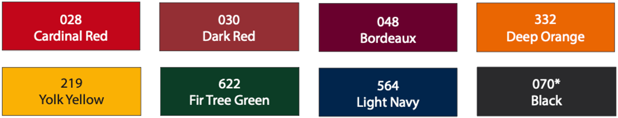 Graphics decals available in eight standard colors.